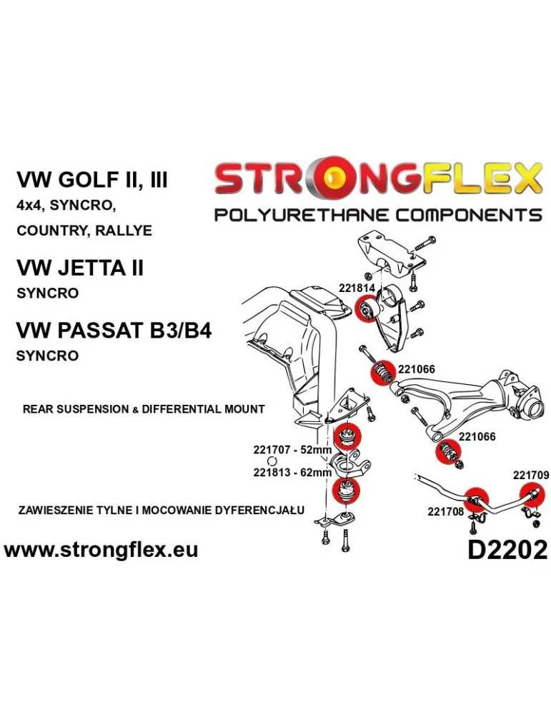 Kit Silents-blocks Renforcés Polyuréthane StrongFlex Volkswagen Golf II Country/Syncro/Rallye/4x4