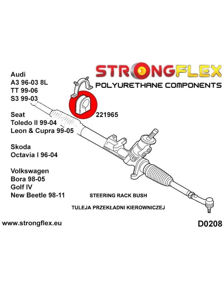221965A Silent block Polyuréthane Support de Crémaillère de direction SPORT Volkswagen Boua 98-05