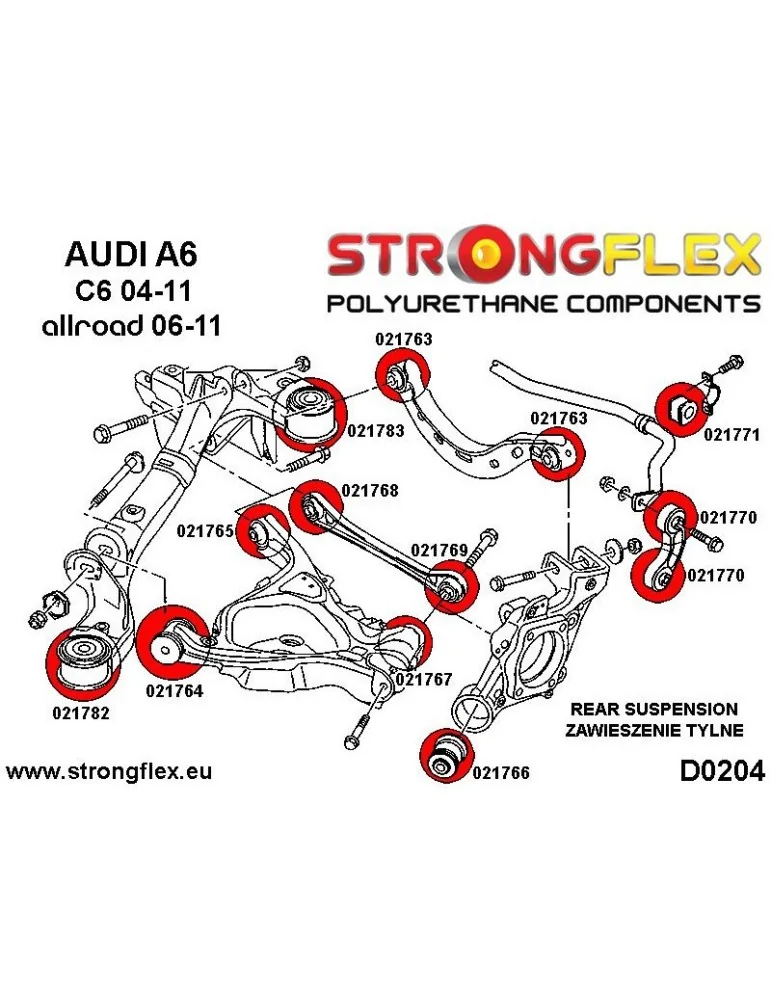 Kit Silents-blocks Renforcés Polyuréthane StrongFlex Audi A6 C6 (04-11) Quattro & Allroad