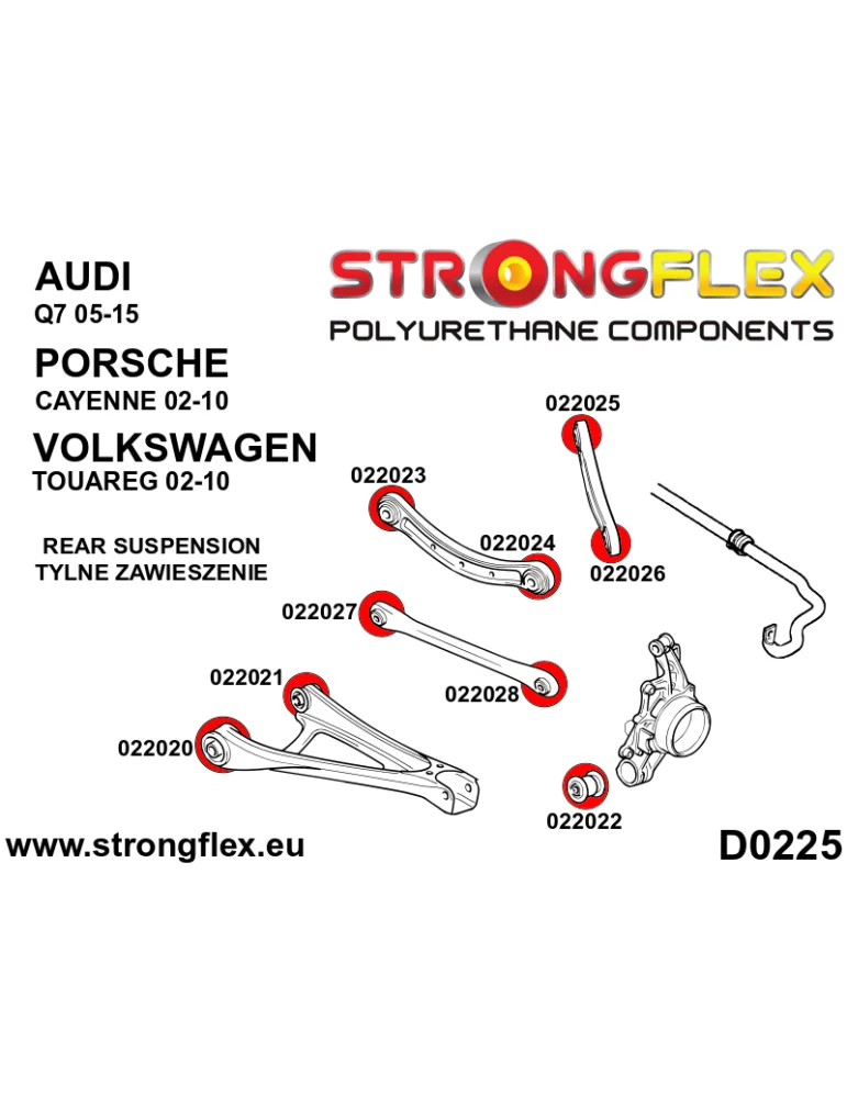 022028A Silent block Polyuréthane SPORT Rotule Extérieure Arrière Porsche Cayenne I (2002-2010)