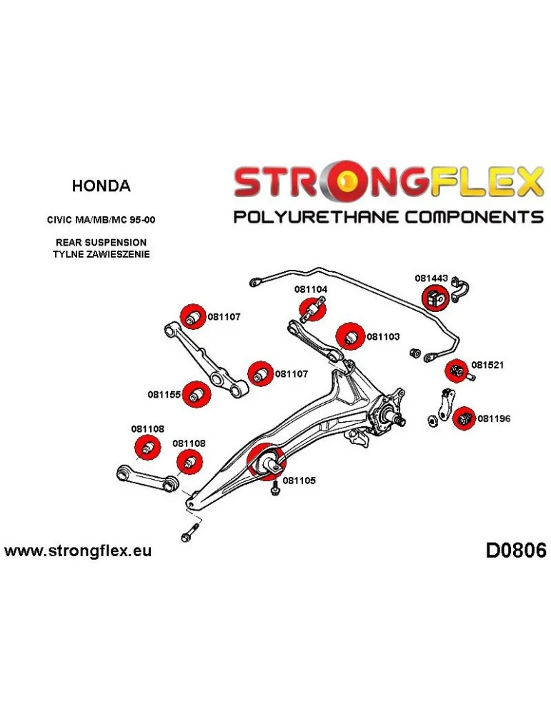 081108A Silent block Polyuréthane SPORT Bras de Liaison Arrière Honda CRX del Sol (92-97)