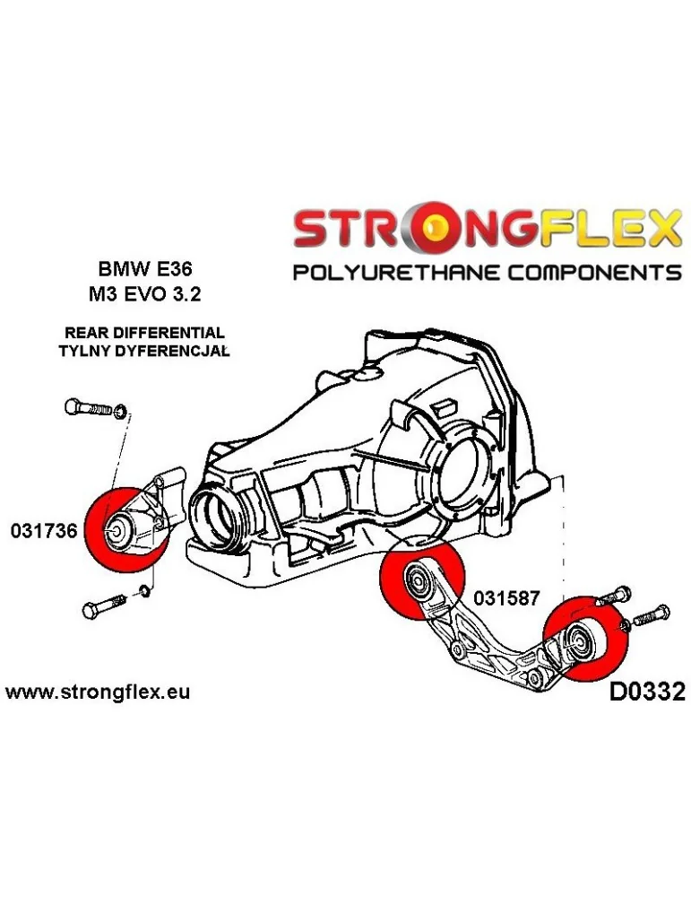 031736A Silent block Polyuréthane SPORT Pont Support BMW E36 M3 EVO