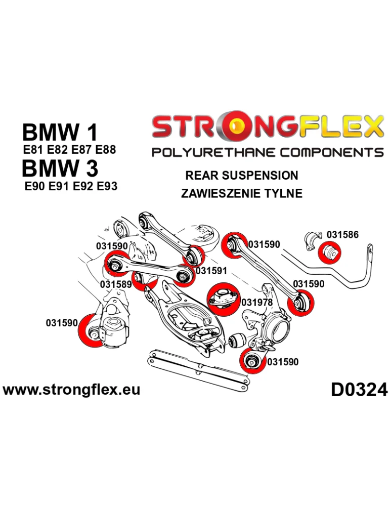 Kit Silents-blocks Renforcés Polyuréthane StrongFlex BMW Seria 1 E81 / E82 E87 E88 (04-13)