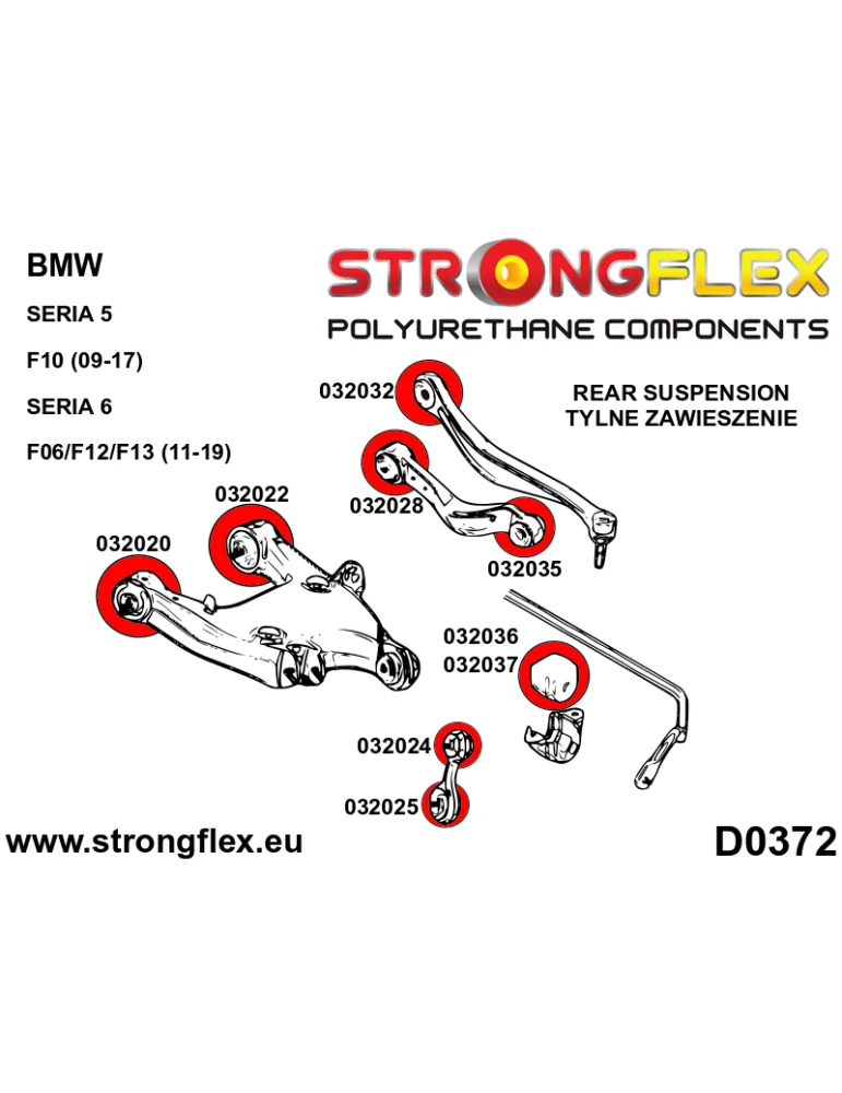 Kit Silents-blocks Renforcés Polyuréthane StrongFlex BMW Seria 5 VI (10-17) F10 / F11 Sedan 2 Roues motrices