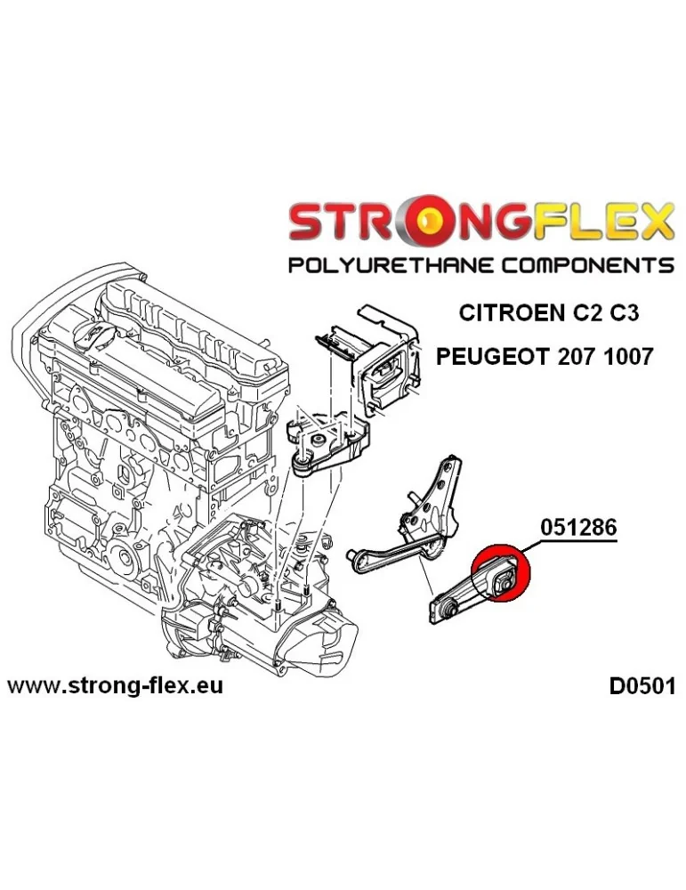 D0501 Support de boite de vitesse avec insert Polyurethane Citroen C2 C3 Peugeot 207 1007
