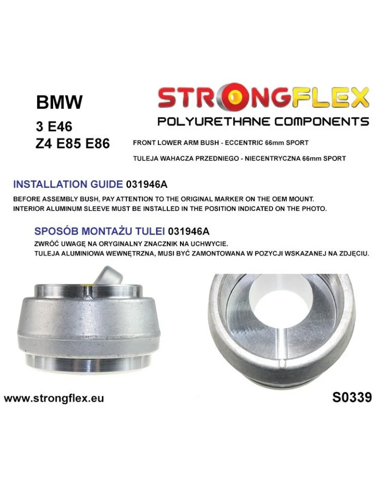 031946A Silent block Polyuréthane Bras Avant Inférieures - eccentric 66mm SPORT BMW Z4 M E85/E86