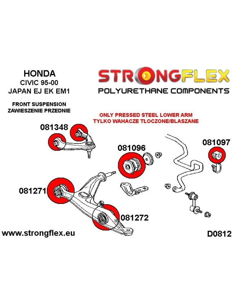 - D0803 Avant Train cast Bras Polyurethane Honda Civic 95-00 Japan EK9 EK8 EJ6 EJ9 EM1