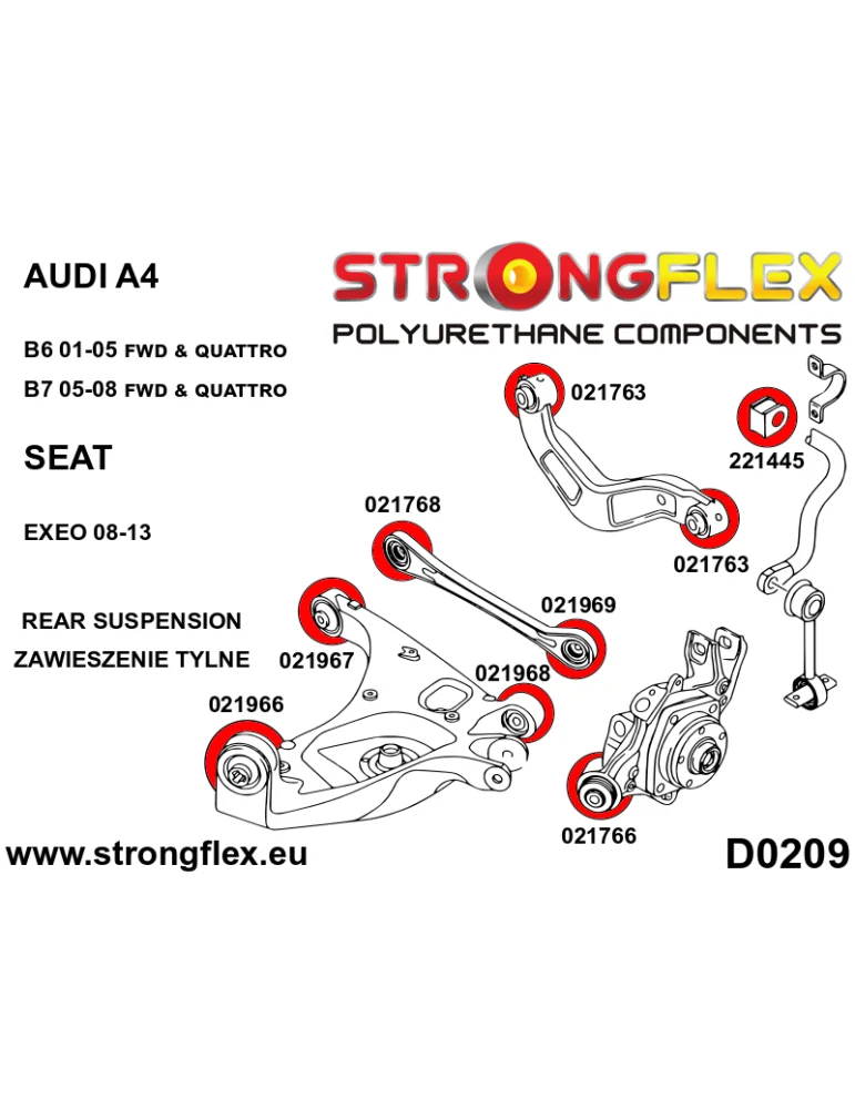 Kit Silents-blocks Renforcés Polyuréthane StrongFlex Audi A4 B6 01-05 2 Roues motrices