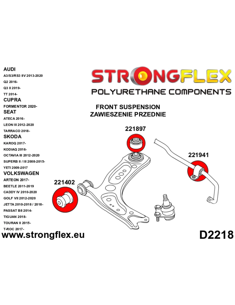 221402A Silent block Polyuréthane SPORT Avant Triangle de Suspension Arrière Avant Audi A3 II (03-13) 8P Quattro