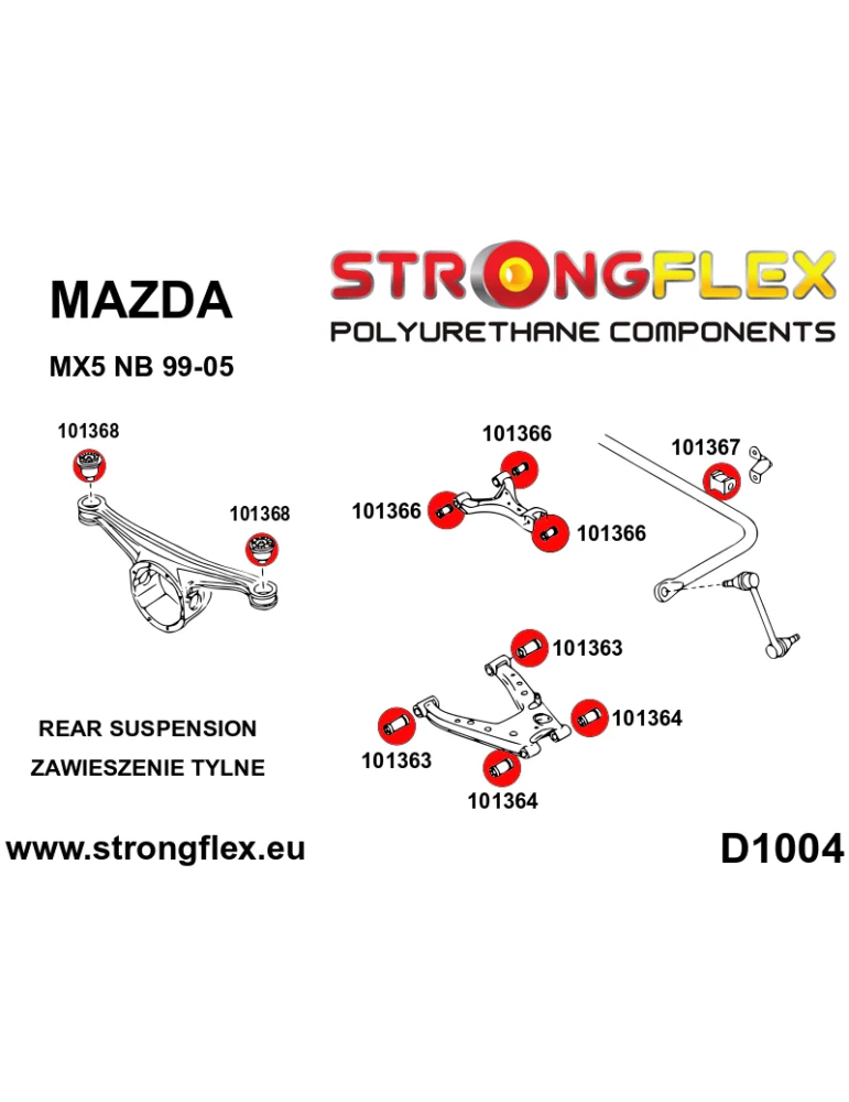 106136A Kit SPORT Silent block Polyuréthane Train Avant Mazda NB 99-05