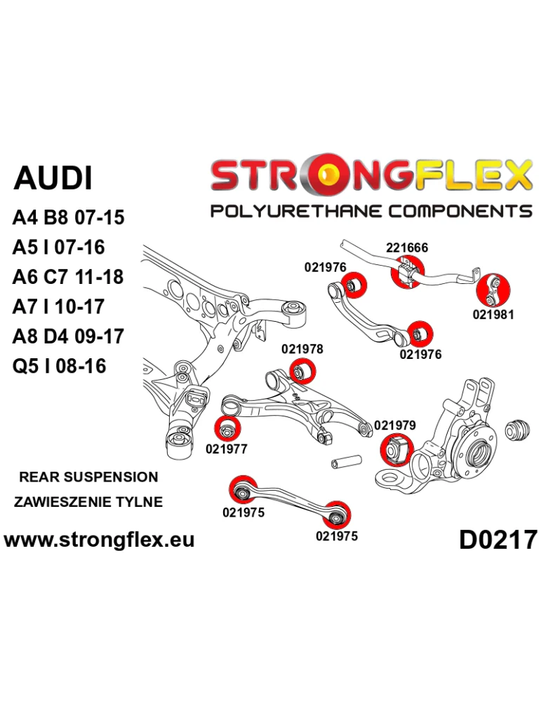 Kit Silents-blocks Renforcés Polyuréthane StrongFlex Audi A4 IV (07-15) B8 / 8K 2 Roues motrices