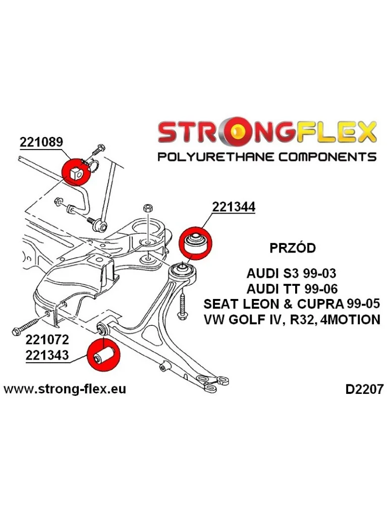 Kit Silents-blocks Renforcés Polyuréthane StrongFlex Volkswagen Golf IV 4x4