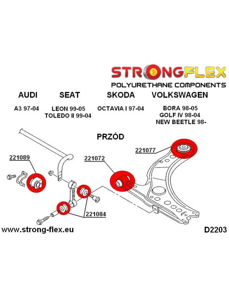 Kit Silents-blocks Renforcés Polyuréthane StrongFlex Seat Leon (4x4 & Cupra R) 99-05