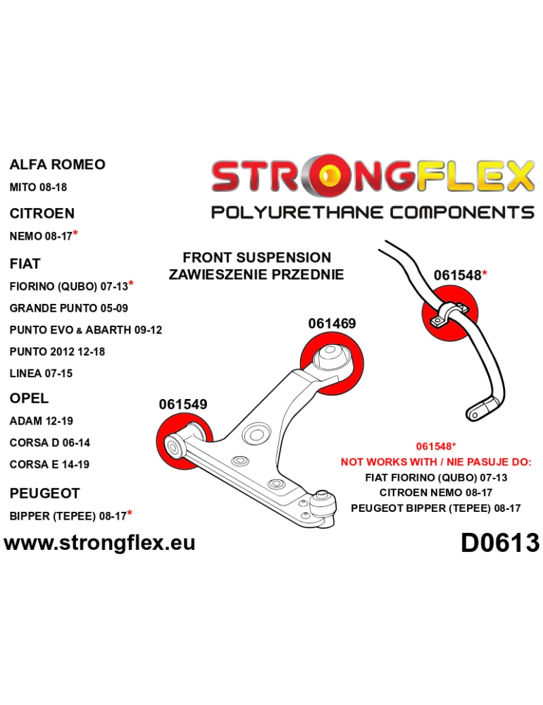 066040A Silent block Polyuréthane kit SPORT Train de Suspension Alfa Romeo Mito (08-18)