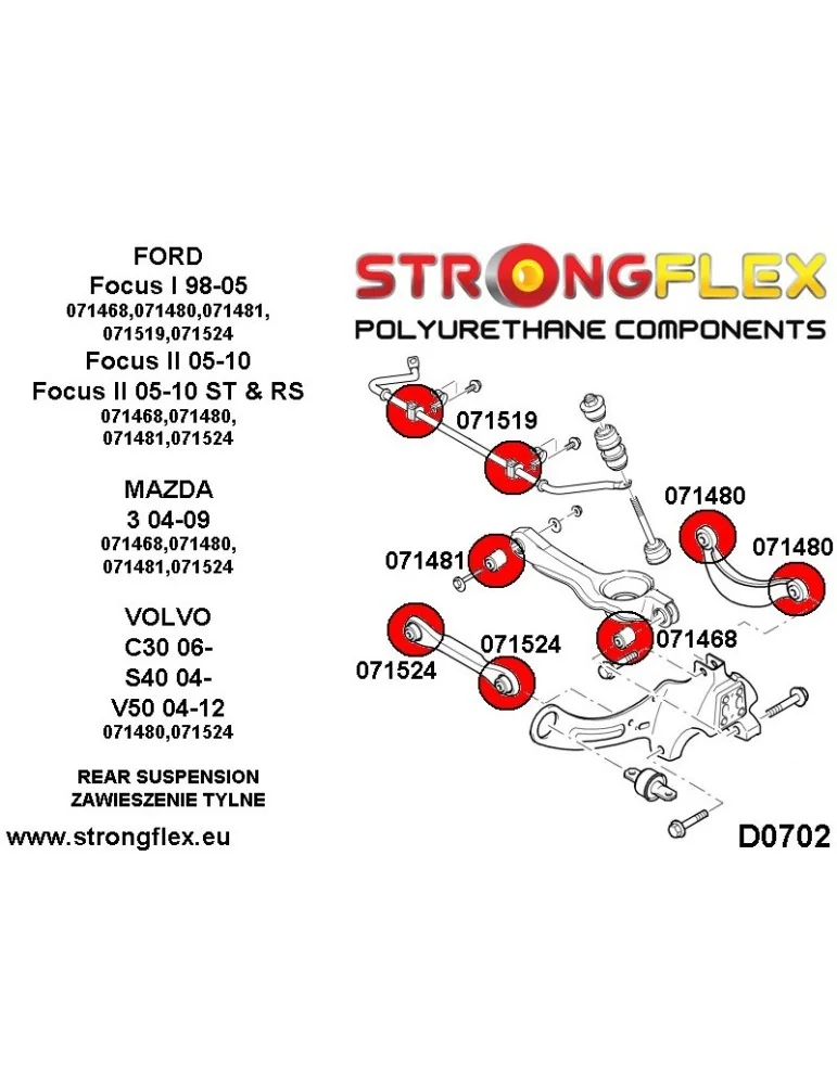 Silent block Polyuréthane Bras de Suspension Extérieur Inférieur Arrière SPORT Focus MK III 10- ST