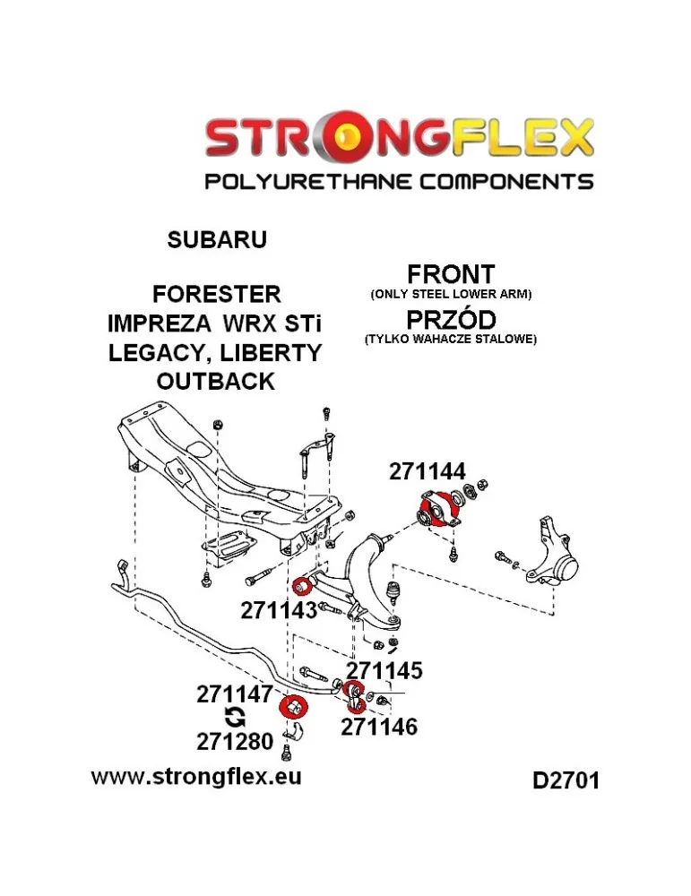 Kit Silents-blocks Renforcés Polyuréthane StrongFlex Subaru Legacy/Liberty BE BH 98-03