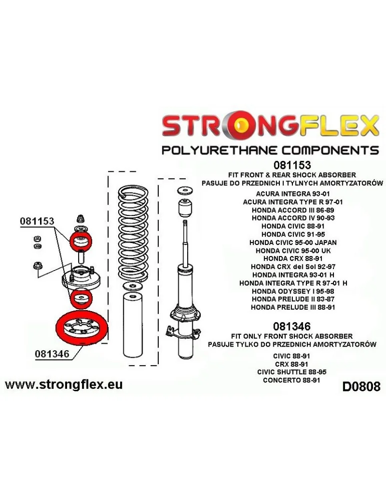 - D0808 Semelle de l'amoutisseur maisée d'amoutisseur Polyurethane Acura Integra Honda Accoud Civic CR-V CRX del Sol Oddysey Prelude