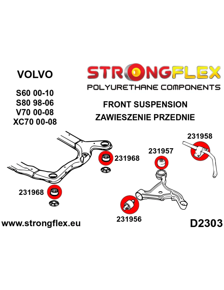 Kit Silents-blocks Renforcés Polyuréthane StrongFlex Volvo V70 XC / XC70 (01-) (-07)