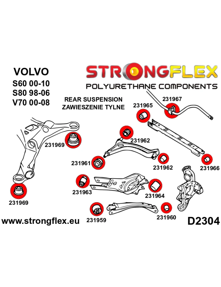 231962A Silent block Polyuréthane SPORT Bras Arrière Supérieur Volvo V70 II (00-07)