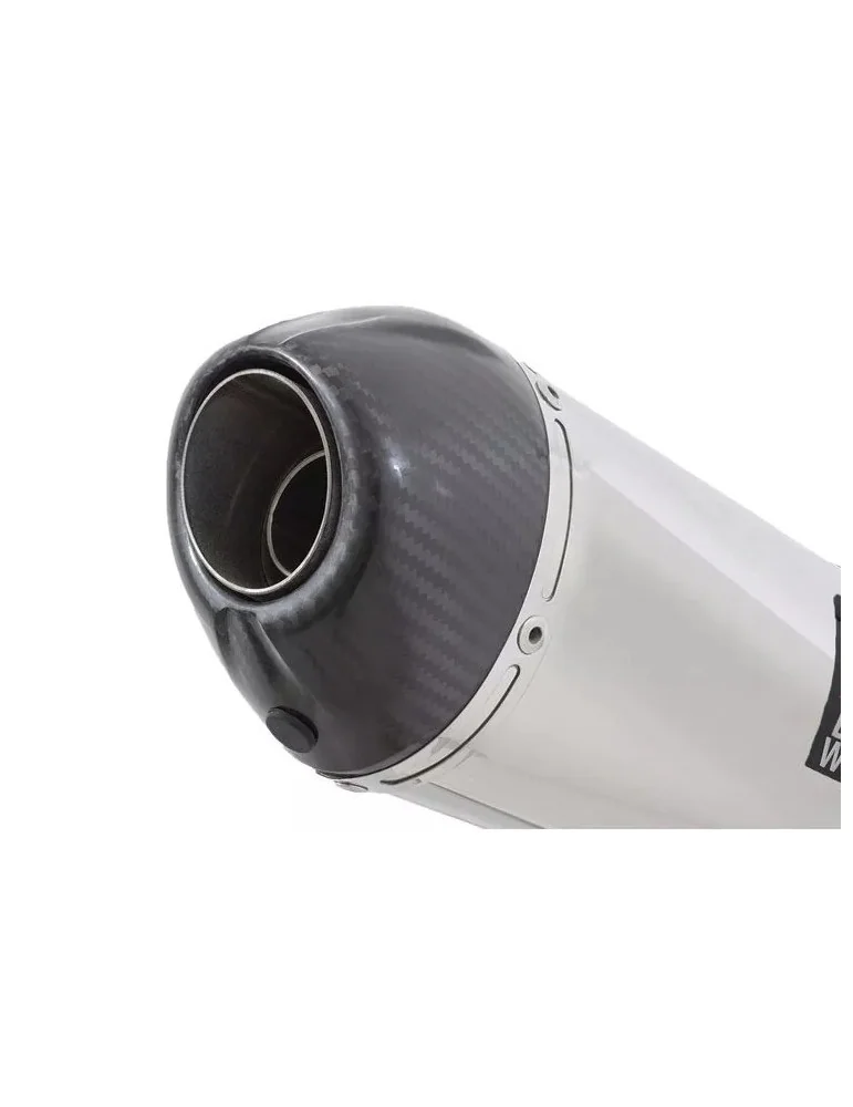 Supplied with an Oval Stainless Steel Silencer with a Carbon Fibre Tip. Fitted with a removable DB killer.